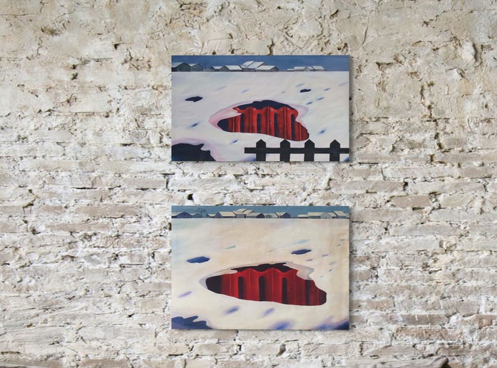"Spring" (1993) by Alexander Kutayev is a powerful visual metaphor reflecting the "thawing" of the Soviet regime and the hopeful beginnings of Perestroika and Glasnost. In this painting, Kutayev specifically focuses on a red radiator that slowly melts the surrounding ice through its warmth. This symbolizes a change, an opening up of previously frozen nature and society. The composition prominently features a crudely built black fence made of wooden planks, representing barriers—either physical or metaphorical—that begin to disintegrate in the face of new warmth. This barrier not only outlines the constraints of the past but also signifies the emerging new life, symbolized by the heat radiating from the radiator, suggesting that old, rigid structures of control and suppression are melting away.