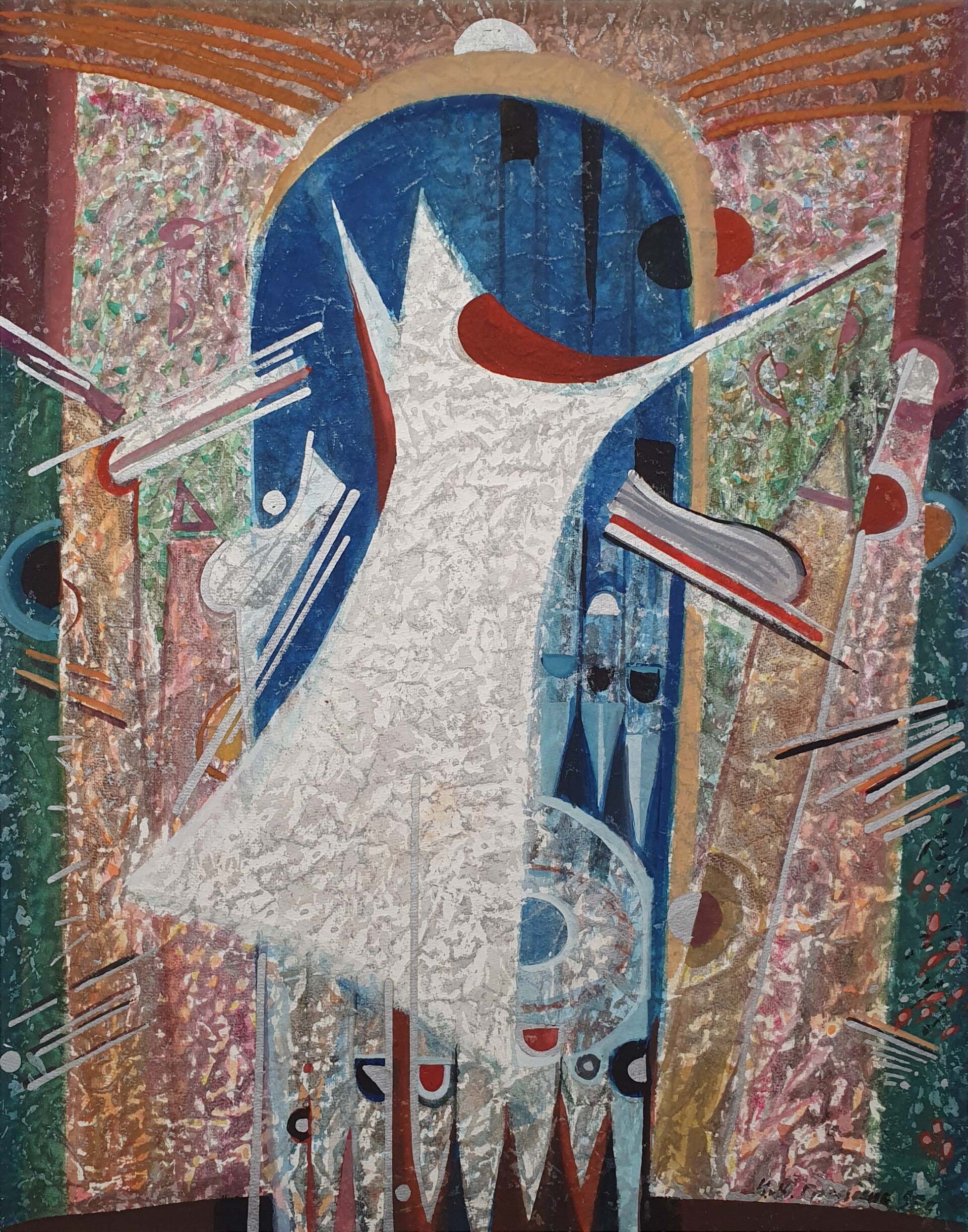 During the late Soviet era and early post-Soviet period, Jury and Irina Gretsky experimented with new forms and styles, inspired by both Western art movements and their own cultural tradition. This cycle symbolically reflects the conflict between good and evil, the dark and light sides of life, which are in constant struggle and contradiction. This conflict is visualized through the connection between earth, time, and space. Everything collides or sums up; a balance is only reached for the moment.